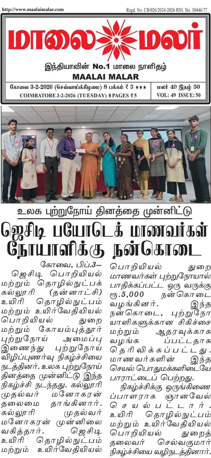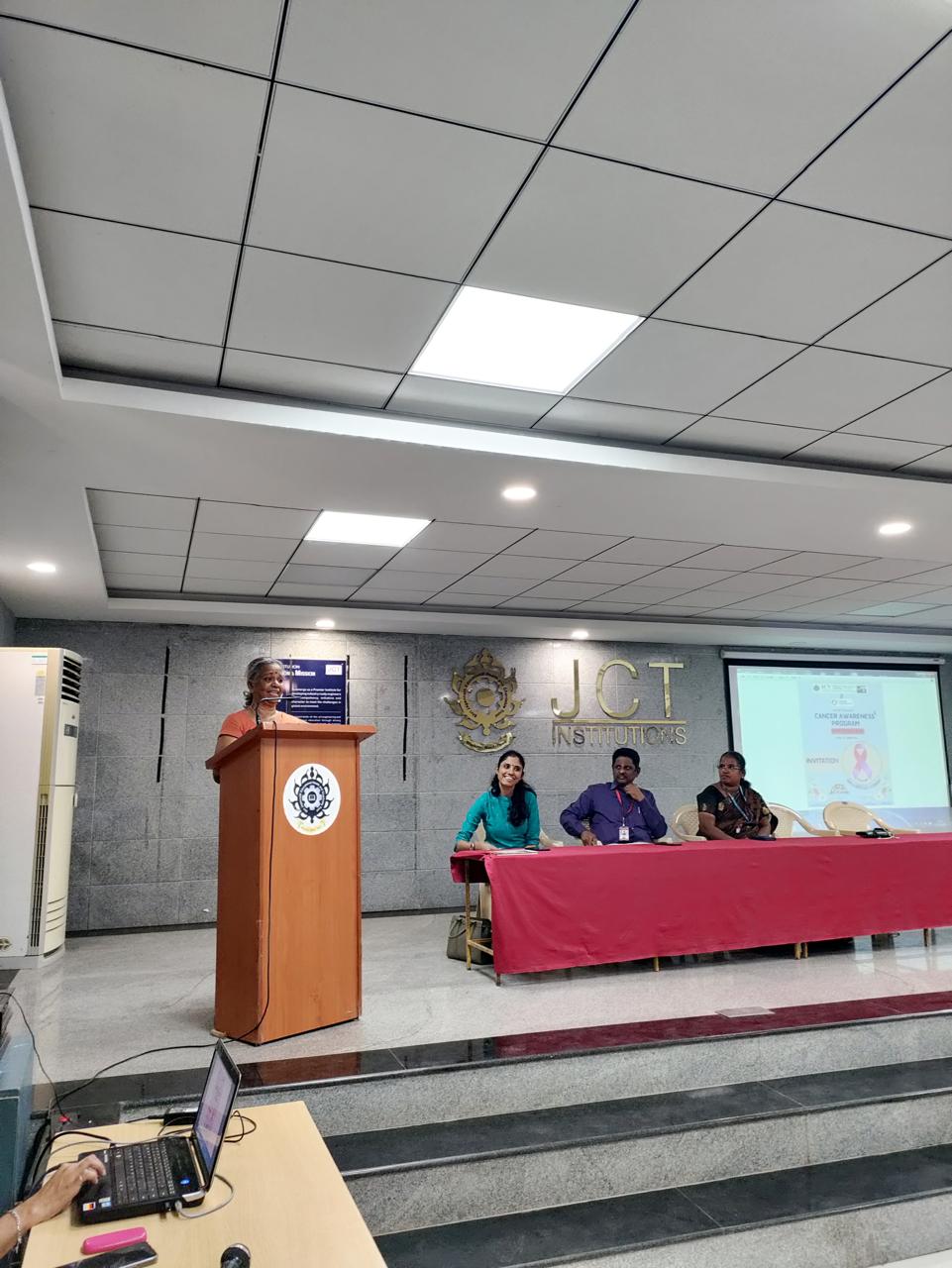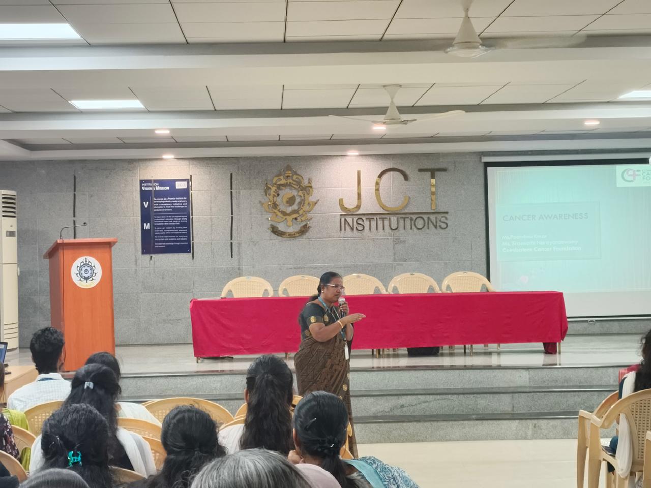 JCT College of Engineering and Technology (Autonomous) - Department of Biotechnology and Biochemical Engineering and “Coimbatore Cancer Society” jointly organized a successful “Cancer Awareness Program” on February 3, 2026 at the JCT Seminar Hall.