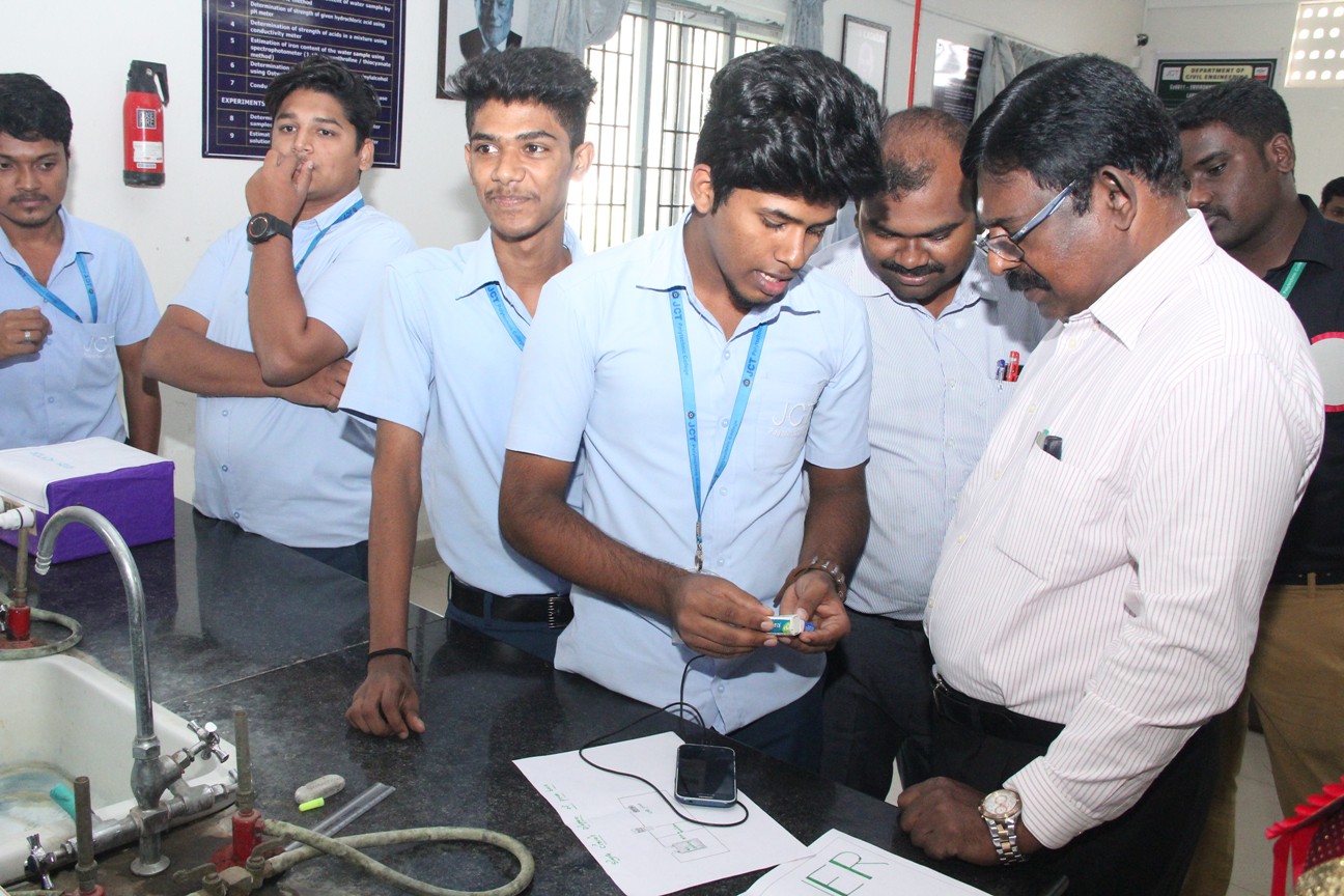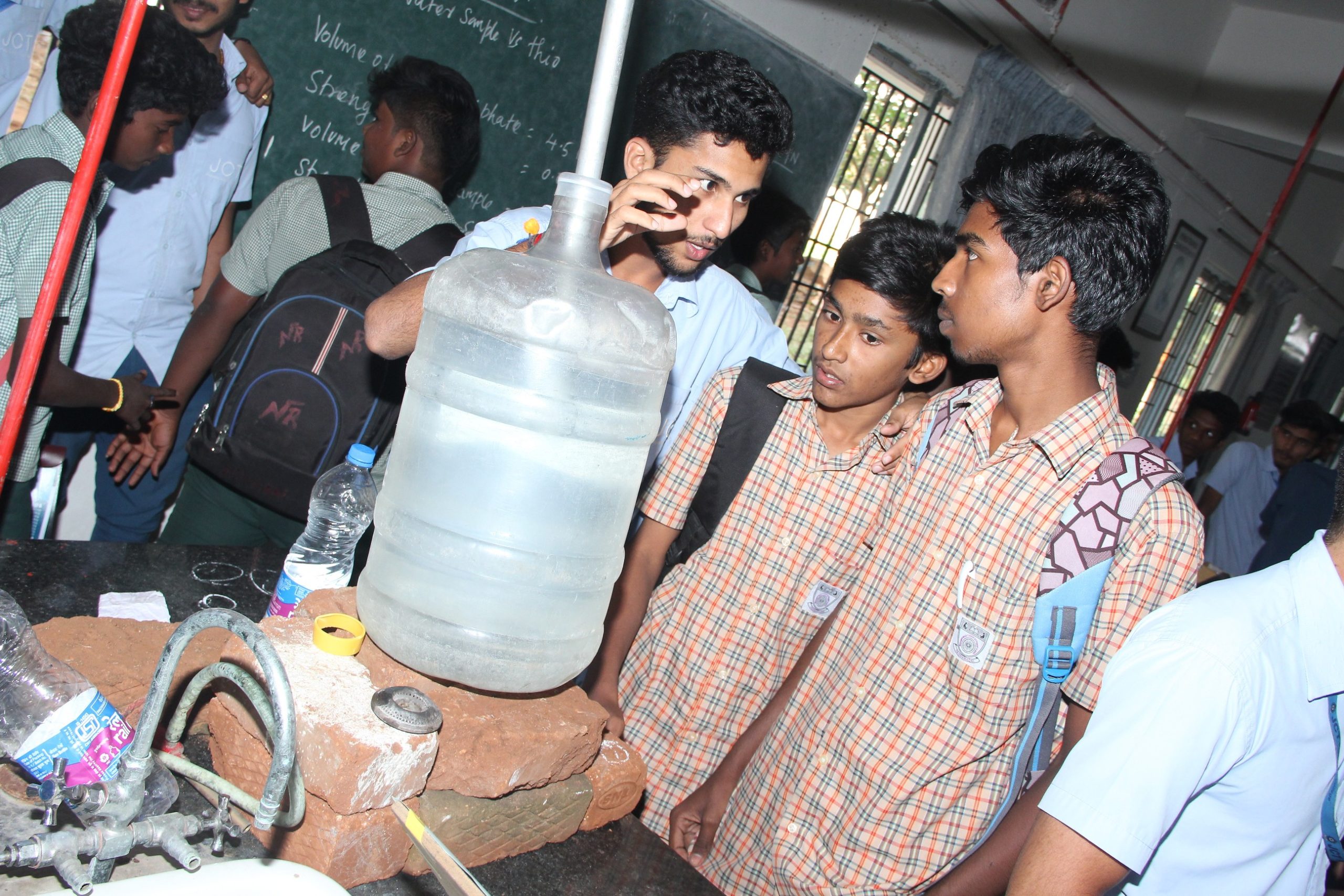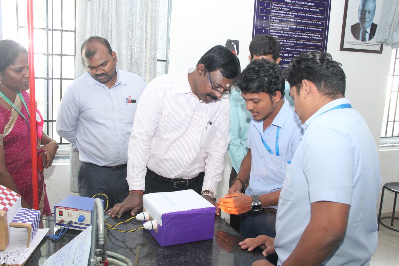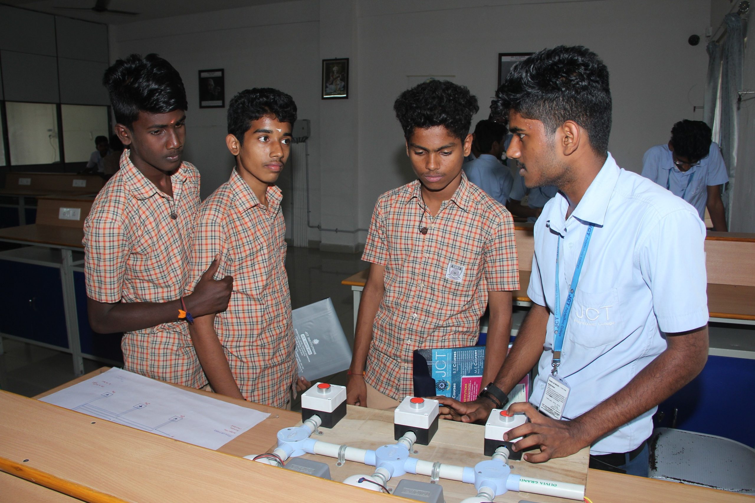 A total of 58 projects from Polytechnic students and 18 projects from School students were exhibited in Physics and Chemistry Labs of JCT CET. During the first day 468 students and the second day 205 students were participated from various schools. About 50 students from engineering college were also visited. A study kit which includes a file, pen, formula kit (10th and 12th std), Pocket 2018 Calendar with Public Exam Timetable, college broucher and exhibition broucher were distributed to all the participants along with refreshments. The accompanying teachers of respective schools were also honored with our Institution diary and Calendar. About 100 volunteers were also involved. To and from transport were arranged to all the school participants. Some of the accepted schools were unable to participate due to their last minute problems.