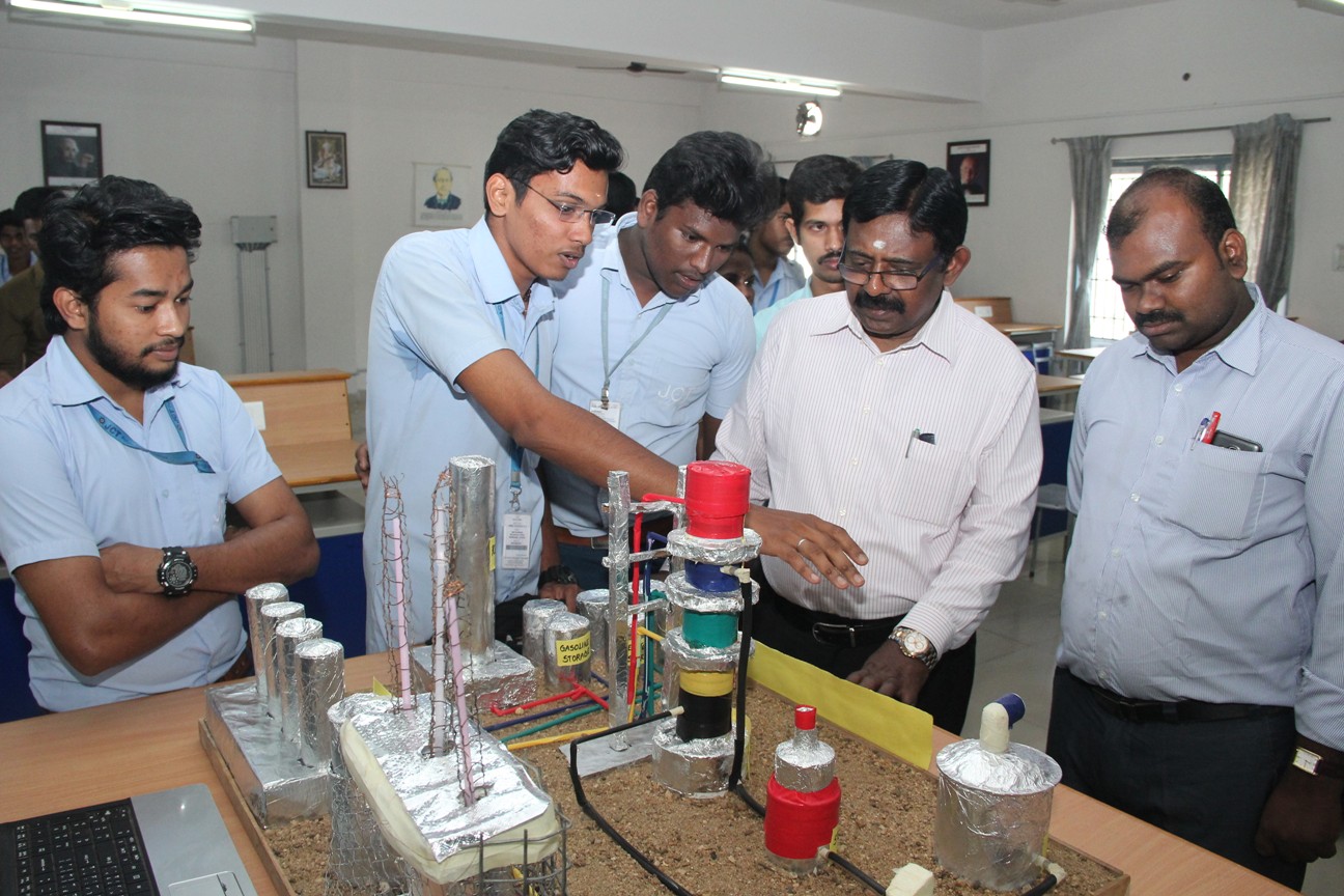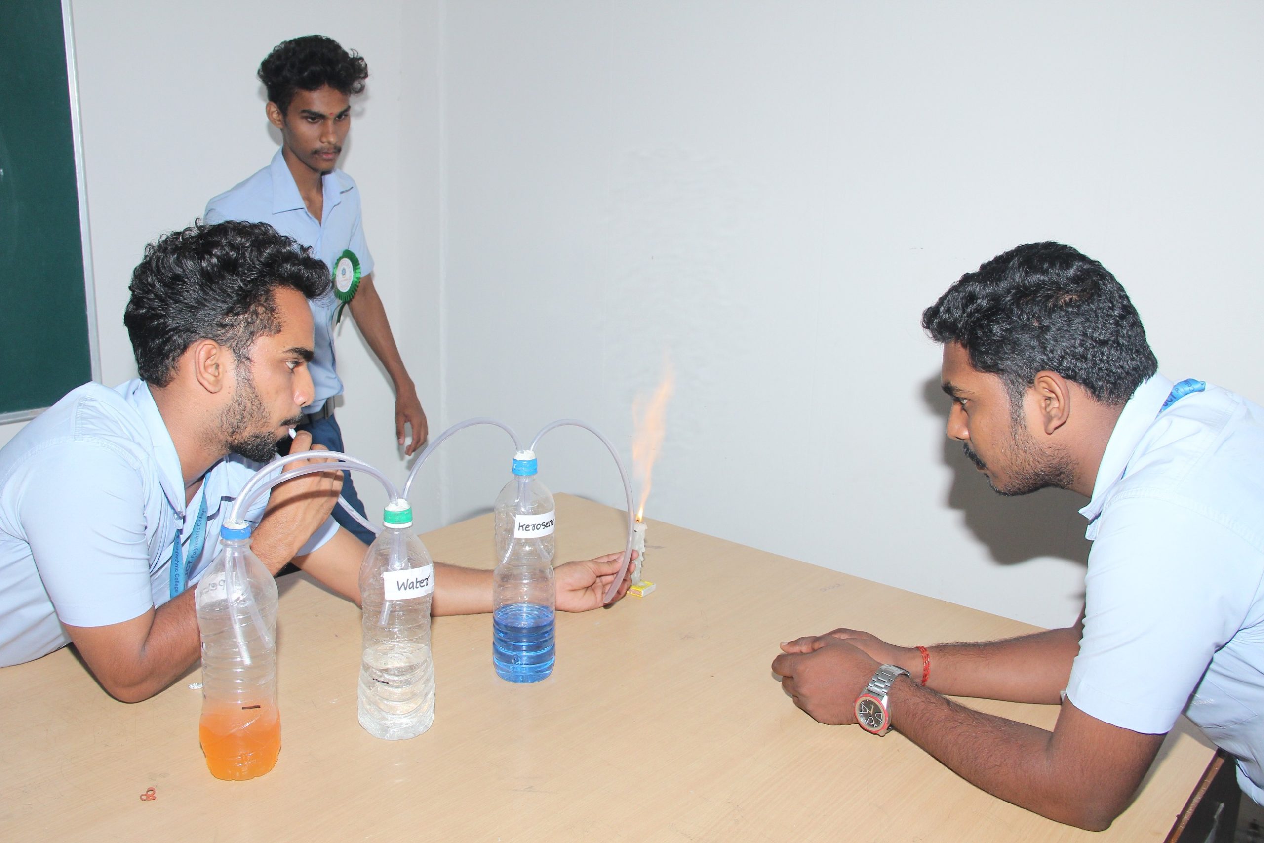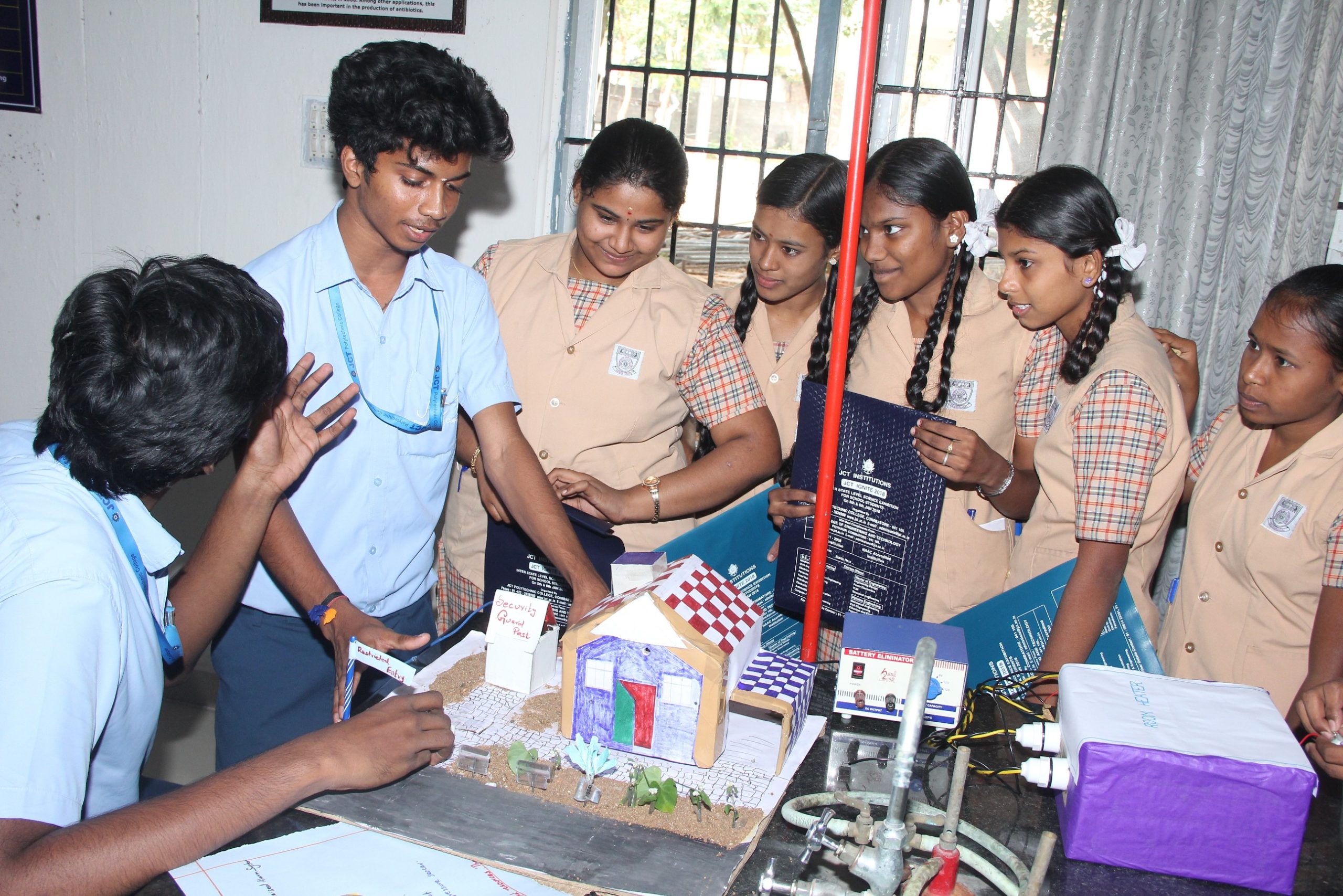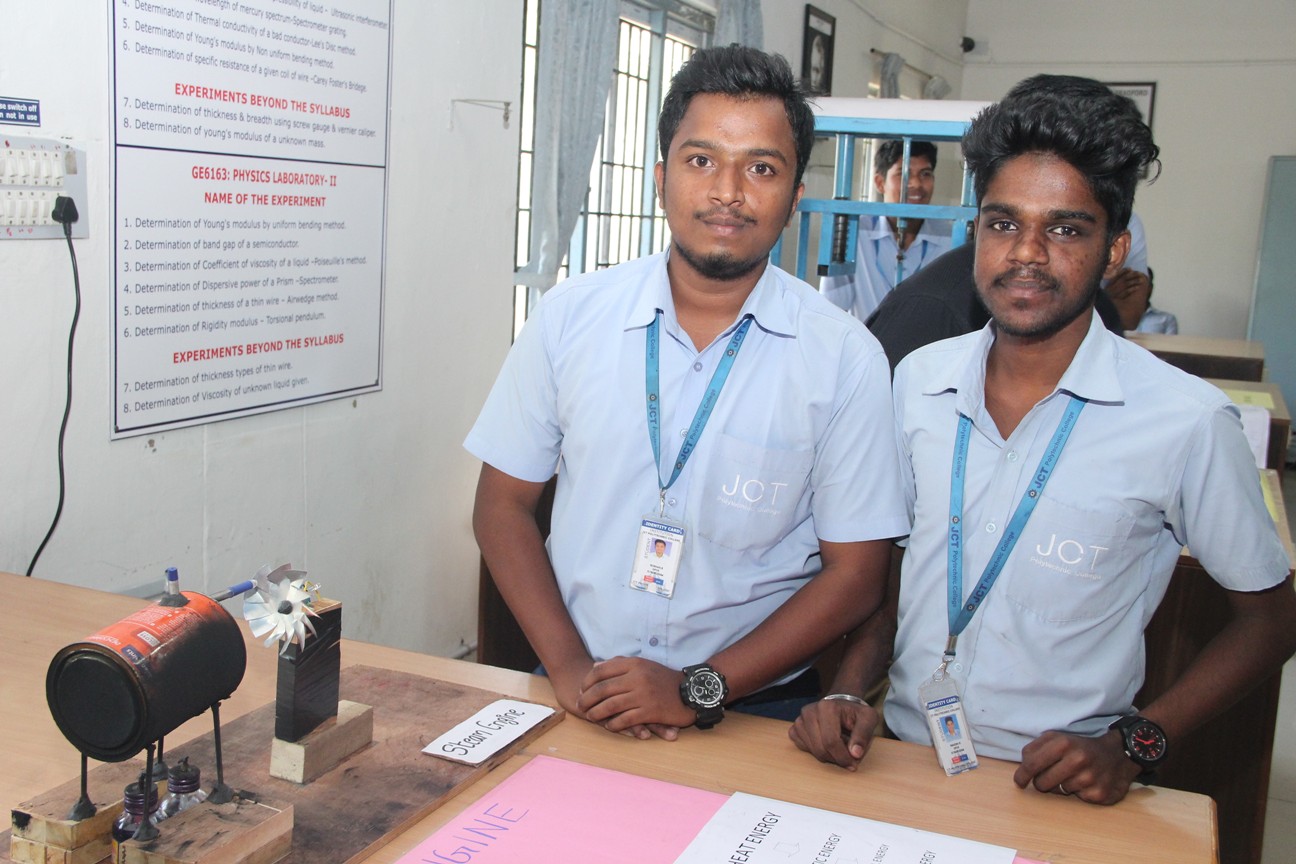 A total of 58 projects from Polytechnic students and 18 projects from School students were exhibited in Physics and Chemistry Labs of JCT CET. During the first day 468 students and the second day 205 students were participated from various schools. About 50 students from engineering college were also visited. A study kit which includes a file, pen, formula kit (10th and 12th std), Pocket 2018 Calendar with Public Exam Timetable, college broucher and exhibition broucher were distributed to all the participants along with refreshments. The accompanying teachers of respective schools were also honored with our Institution diary and Calendar. About 100 volunteers were also involved. To and from transport were arranged to all the school participants. Some of the accepted schools were unable to participate due to their last minute problems.