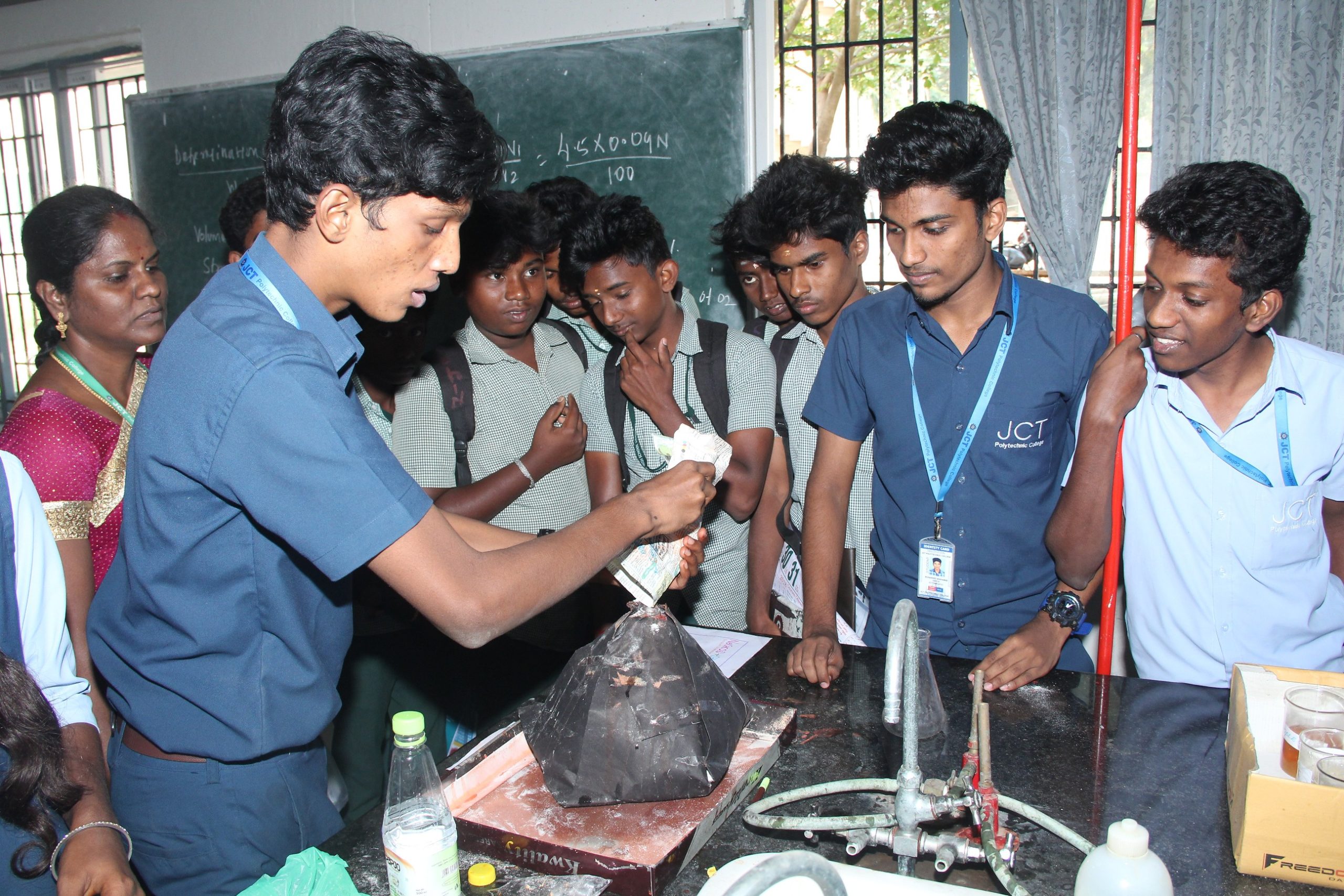 JCT Polytechnic College organized a two day Inter-State Science Exhibition JCT IGNITE 2018 on 05.01.18 and 06.01.18 in the JCT Engineering College premises to attract 10th and 12th school students of Tamil Nadu and Kerala states of our college surrounding schools.