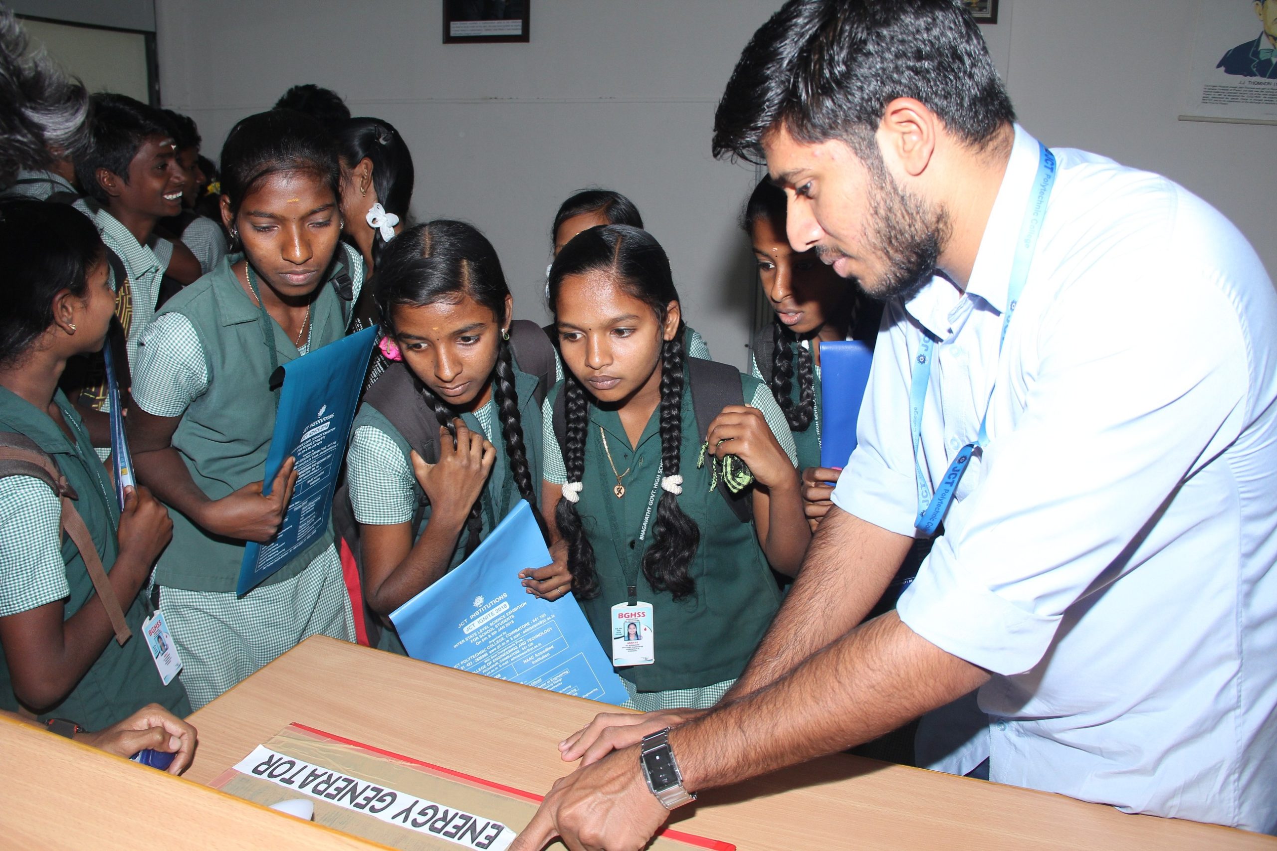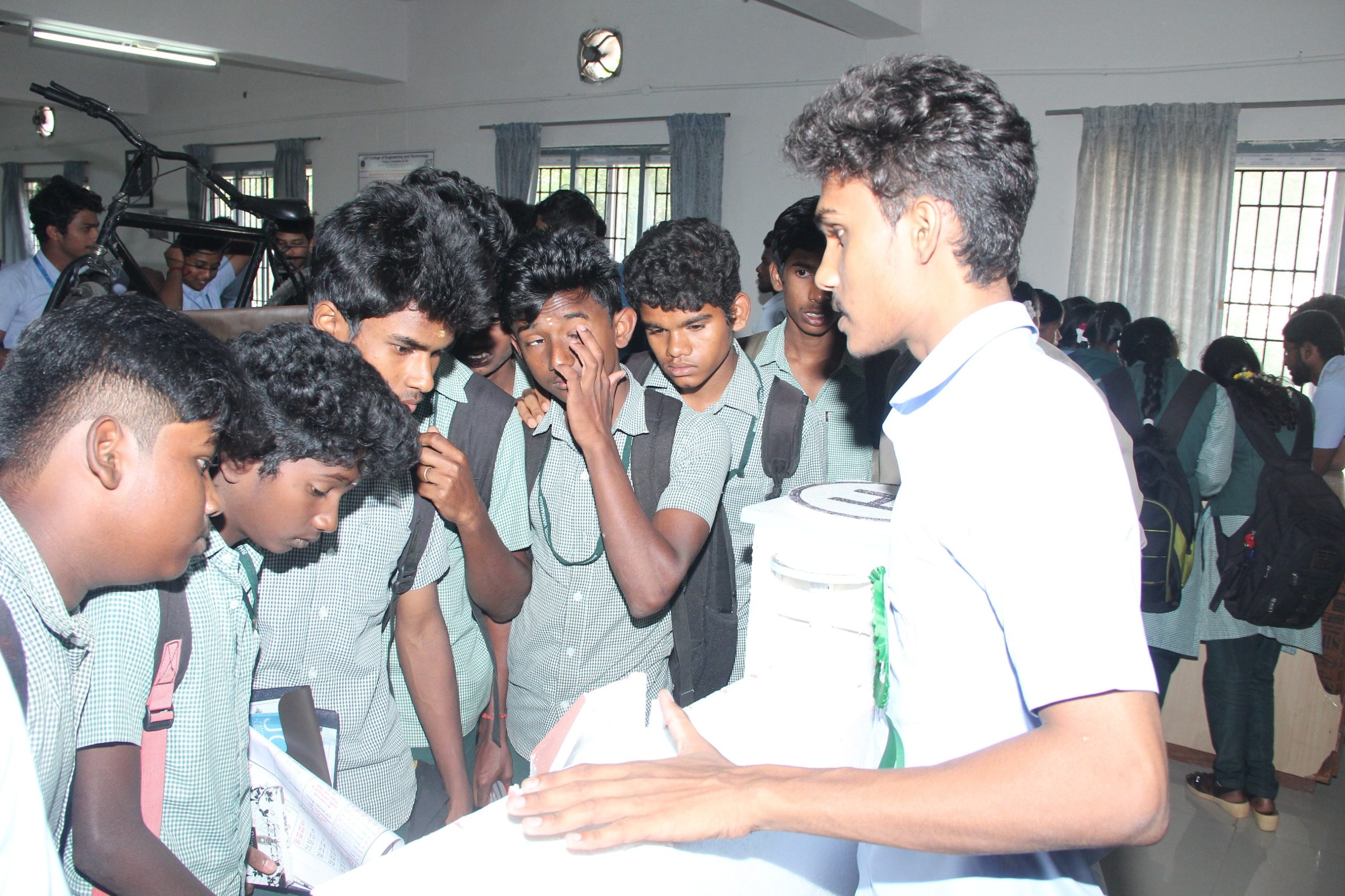 The faculty of all departments approached 74 schools in Coimbatore and 53 schools in Kerala covering the area till Mannarkad. Out of which 10 school headmasters initially considered our request and we expected 1100+ students for exhibition on both the days.