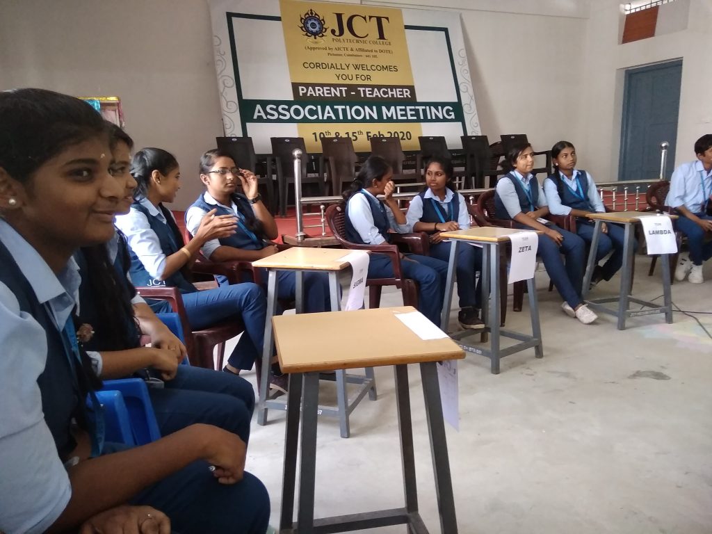 Jct polytechnic college conducted quiz program on 04/03/2020, coordinated by MR.S.NIRMAL KUMAR,lect./civil department & MR.ARIF,lect./basic engineering.8 teams from all various departments were participated.the program starts by 2.00 pm of noon at barathiyar arangam.